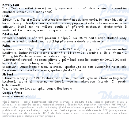 Yuzu Tea je tradiční korejský nápoj, vyrobený z citrusů Yuzu a medu s vysokým obsahem vitaminu C a antioxidantů.