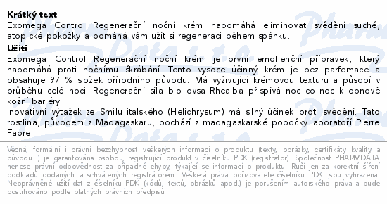 Exomega Control Regenerační noční krém napomáhá eliminovat svědění suché, atopické pokožky a pomáhá vám užít si regeneraci během spánku.