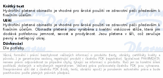 Hydrofilní pletené obinadlo je vhodné pro široké použití ve zdravotní péči především k fixačním účelům.