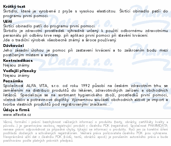 Škrtidlo, které je vyrobené z pryže s vysokou elasticitou. Škrtící obinadlo patří do programu první pomoci.