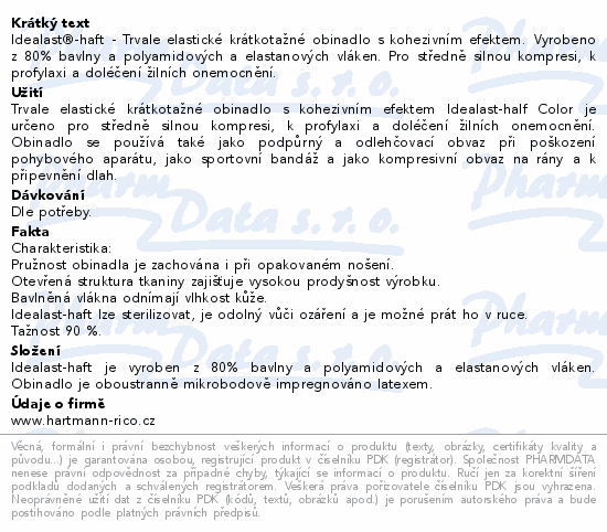 Idealast®-haft - Trvale elastické krátkotažné obinadlo s kohezivním efektem. Vyrobeno z 80% bavlny a polyamidových a elastanových vláken. Pro středně silnou kompresi, k profylaxi a doléčení žilních onemocnění.
