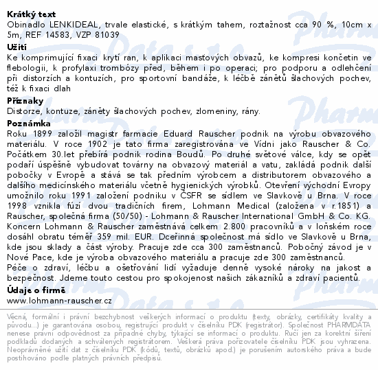 Obinadlo LENKIDEAL, trvale elastické, s krátkým tahem, roztažnost cca 90 %, 10cm x 5m, REF 14583, VZP 81039
