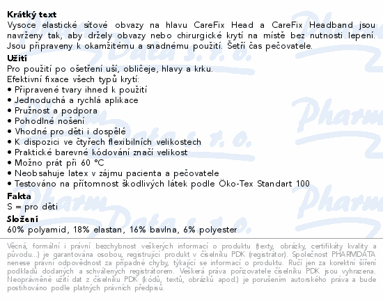Vysoce elastické síťové obvazy na hlavu CareFix Head a CareFix Headband jsou navrženy tak, aby držely obvazy nebo chirurgické krytí na místě bez nutnosti lepení. Jsou připraveny k okamžitému a snadnému použití. Šetří čas pečovatele.