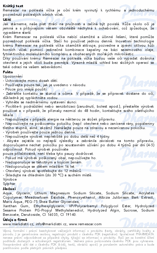 Remescar na pokleslá víčka je oční krém vyvinutý k rychlému a jednoduchému pozvednutí pokleslých očních víček.