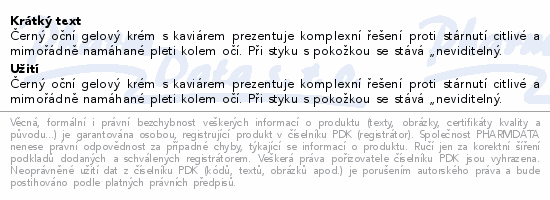 Černý oční gelový krém s kaviárem prezentuje komplexní řešení proti stárnutí citlivé a mimořádně namáhané pleti kolem očí. Při styku s pokožkou se stává „neviditelný.