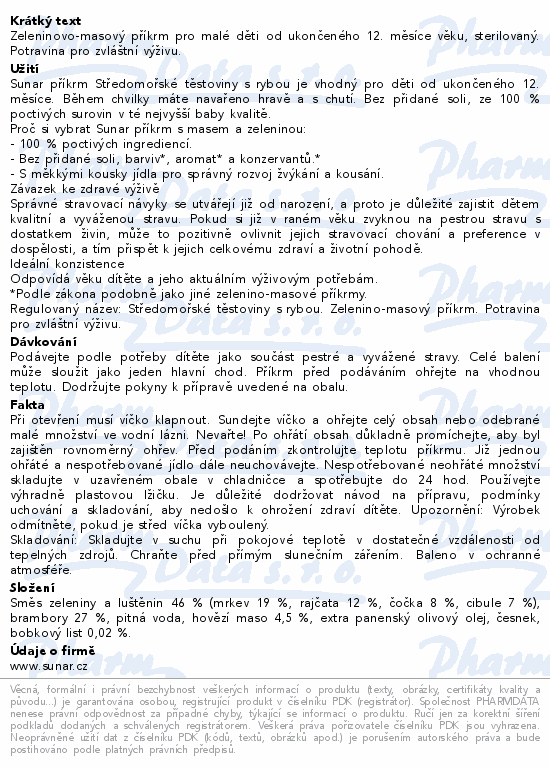 Sunar příkrm Středomoř.těst.s ryb.od uk.12m+ 235g