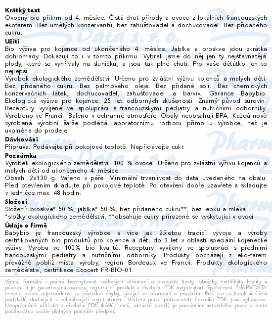 Ovocný bio příkrm od 4. měsíce. Čistá chuť přírody a ovoce z lokálních francouzských ekofarem. Bez umělých konzervantů, bez zahušťovadel a dochucovadel. Bez přidaného cukru.