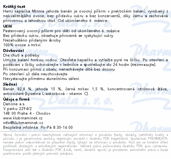 Hami kapsička Minnie jahoda banán je ovocný příkrm v praktickém balení, vyrobený z nejkvalitnějšího ovoce, bez přídavku cukru a bez konzervantů, díky čemu si zachovává přirozenou a lahodnou chuť. Od ukončeného 6. měsíce.