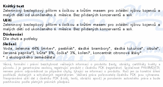 Zeleninový bezlepkový příkrm s čočkou a krůtím masem pro zvláštní výživu kojenců a malých dětí od ukončeného 6. měsíce. Bez přidaných konzervantů a soli.