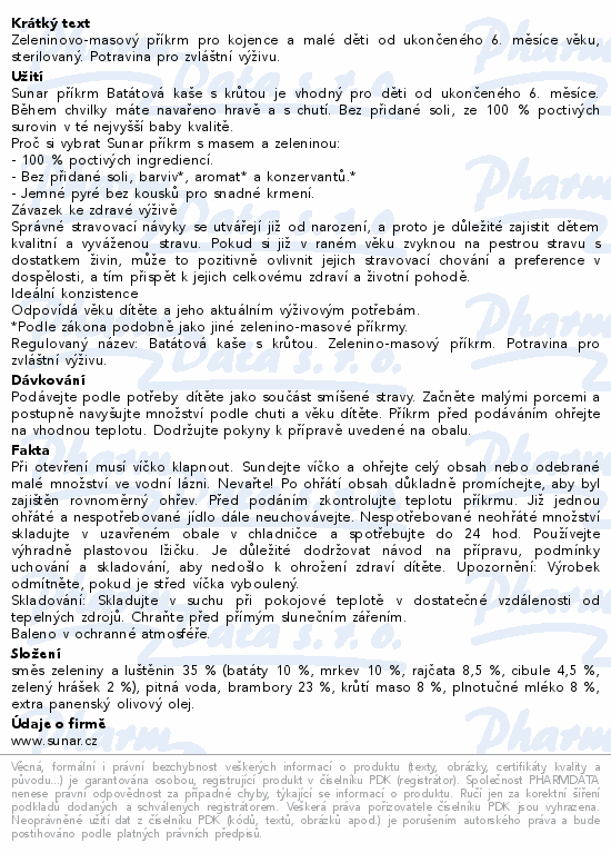 Sunar příkrm Batátová kaše s krůt.od ukon.6m+190g