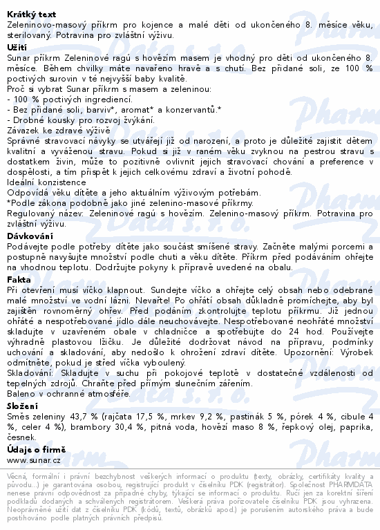 Sunar příkrm Zelenin.ragú s hověz.od ukon.8m+ 190g