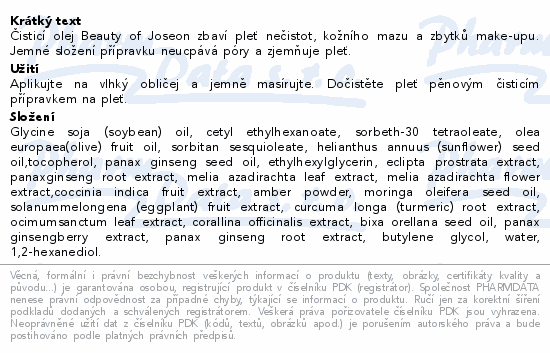 Čisticí olej Beauty of Joseon zbaví pleť nečistot, kožního mazu a zbytků make-upu. Jemné složení přípravku neucpává póry a zjemňuje pleť.