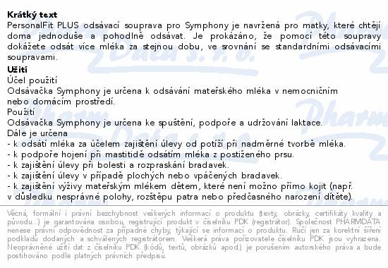 PersonalFit PLUS odsávací souprava pro Symphony je navržená pro matky, které chtějí doma jednoduše a pohodlně odsávat. Je prokázáno, že pomocí této soupravy dokážete odsát více mléka za stejnou dobu, ve srovnání se standardními odsávacími soupravami.