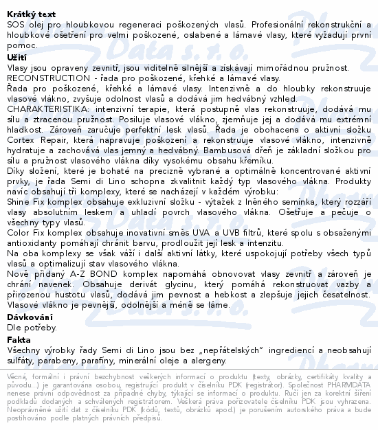 SOS olej pro hloubkovou regeneraci poškozených vlasů. Profesionální rekonstrukční a hloubkové ošetření pro velmi poškozené, oslabené a lámavé vlasy, které vyžadují první pomoc.