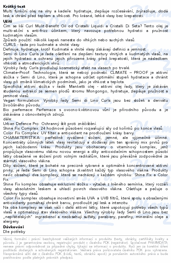 Multi funkční olej na vlny a kadeře: hydratuje, zlepšuje rozčesávání, zvýrazňuje, dodá lesk a chrání před teplem a vlhkosti. Pro krásné, lehké vlasy bez krepatosti.