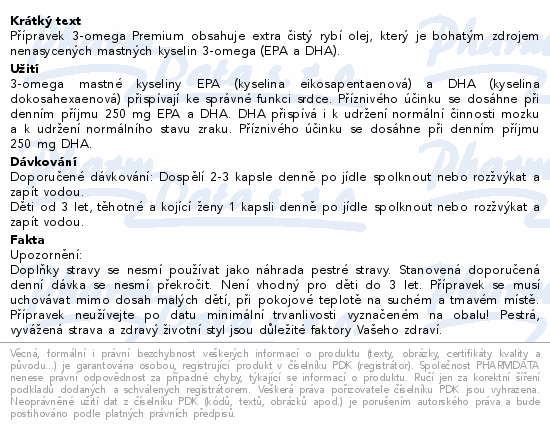 Přípravek 3-omega Premium obsahuje extra čistý rybí olej, který je bohatým zdrojem nenasycených mastných kyselin 3-omega (EPA a DHA).