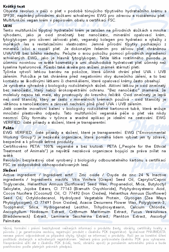 Objevte revoluci v péči o pleť v podobě tónujícího třpytivého hydratačního krému s SPF30, naplněný přírodními složkami schválenými EWG pro zdravou a rozzářenou pleť. Multifunkční vegan krém v papírovém obalu s certifikací FSC.