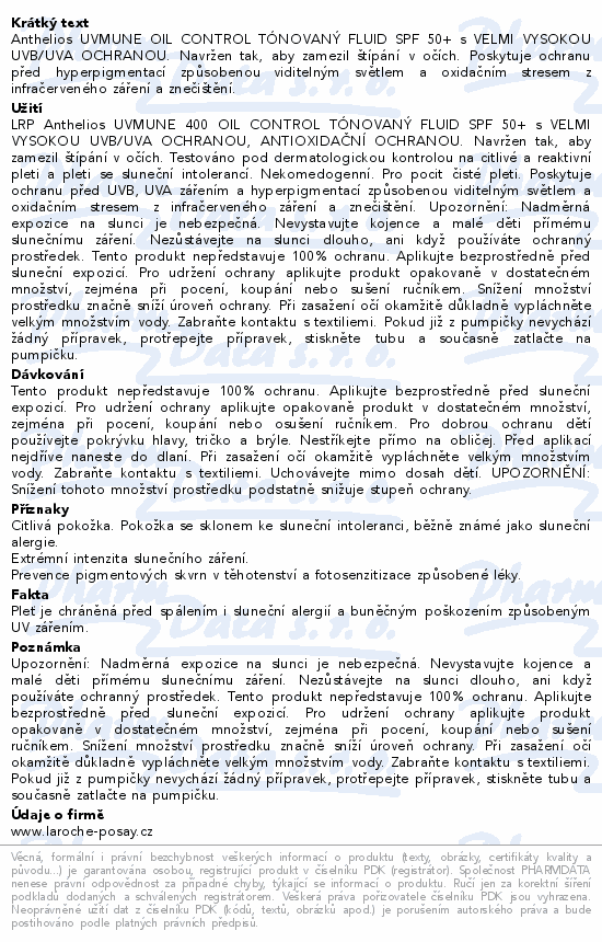 Anthelios UVMUNE OIL CONTROL TÓNOVANÝ FLUID SPF 50+ s VELMI VYSOKOU UVB/UVA OCHRANOU. Navržen tak, aby zamezil štípání v očích. Poskytuje ochranu před hyperpigmentací způsobenou viditelným světlem a oxidačním stresem z infračerveného záření a znečištění.