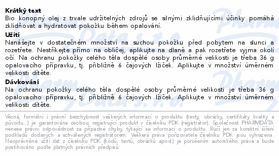 Bio konopný olej z trvale udržitelných zdrojů se silnými zklidňujícími účinky pomáhá zklidňovat a hydratovat pokožku během opalování.