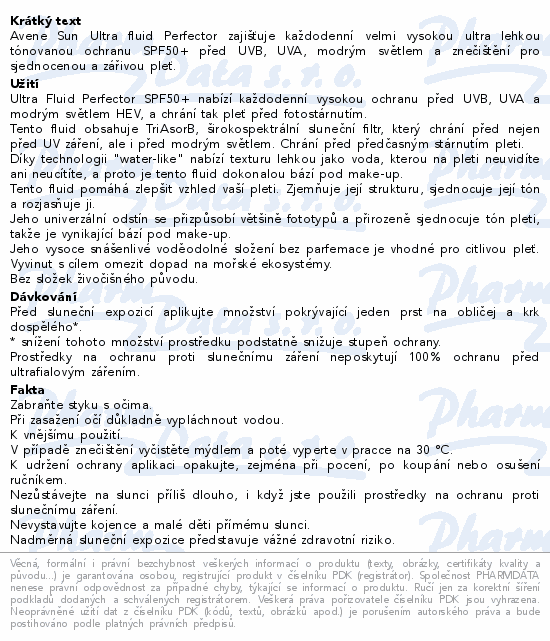 Avene Sun Ultra fluid Perfector zajišťuje každodenní velmi vysokou ultra lehkou tónovanou ochranu SPF50+ před UVB, UVA, modrým světlem a znečištění pro sjednocenou a zářivou pleť.
