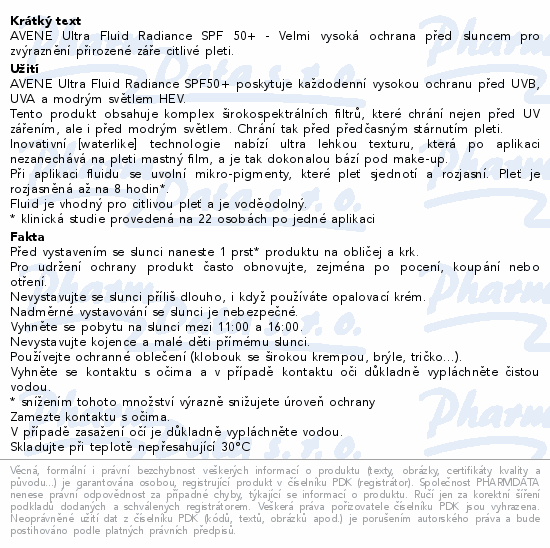 AVENE Ultra Fluid Radiance SPF 50+ - Velmi vysoká ochrana před sluncem pro zvýraznění přirozené záře citlivé pleti.