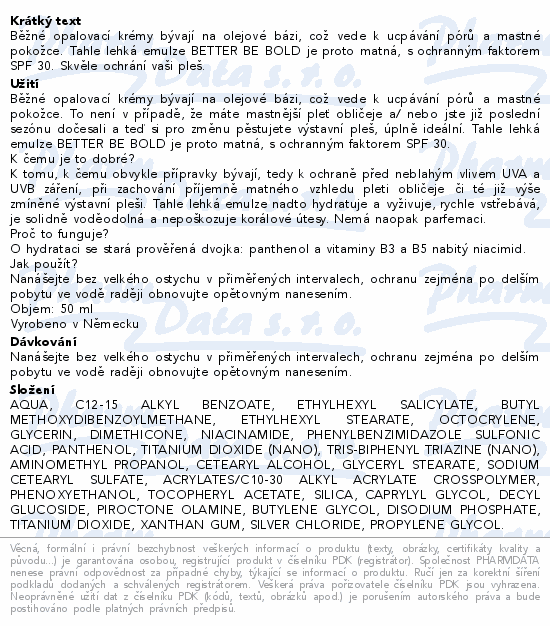 BETTER BE BOLD Opalovací emulze SPF30 na pleš 50ml