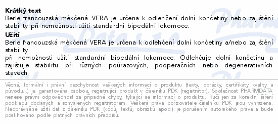 Berle francouzská měkčená VERA je určena k odlehčení dolní končetiny nebo zajištění stability při nemožnosti užití standardní bipedální lokomoce.