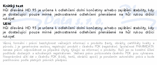 Hůl dřevěná HD 95 je určena k odlehčení dolní končetiny a/nebo zajištění stability, kdy je dostačující pouze mírné jednostranné odlehčení přenášené na hůl rukou držící rukojeť.