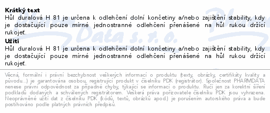 Hůl duralová H 81 je určena k odlehčení dolní končetiny a/nebo zajištění stability, kdy je dostačující pouze mírné jednostranné odlehčení přenášené na hůl rukou držící rukojeť.
