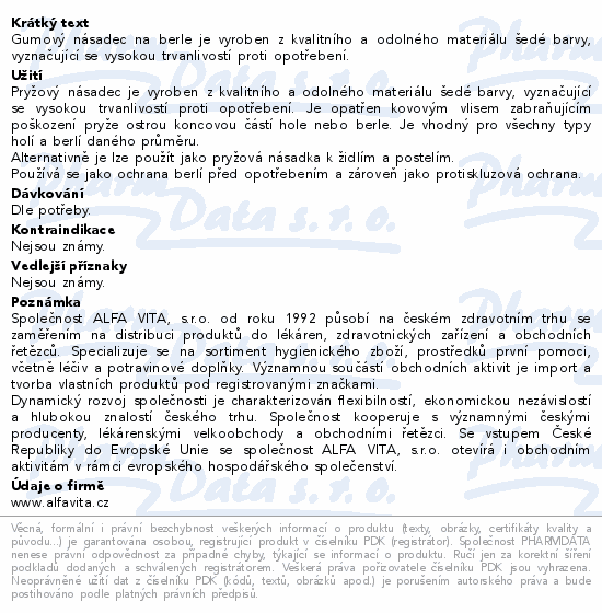 Gumový násadec na berle je vyroben z kvalitního a odolného materiálu šedé barvy, vyznačující se vysokou trvanlivostí proti opotřebení.