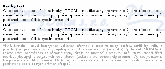 Ortopedické abdukční kalhotky T-TOMI, notifikovaný zdravotnický prostředek, jsou osvědčenou volbou při podpoře správného vývoje dětských kyčlí – zejména při prevenci nebo léčbě kyčelní dysplazie.