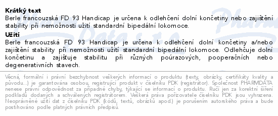 Berle francouzská FD 93 Handicap je určena k odlehčení dolní končetiny nebo zajištění stability při nemožnosti užití standardní bipedální lokomoce.