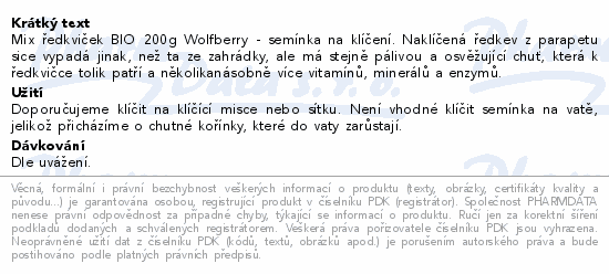 Mix ředkviček BIO 200g Wolfberry - semínka na klíčení. Naklíčená ředkev z parapetu sice vypadá jinak, než ta ze zahrádky, ale má stejně pálivou a osvěžující chuť, která k ředkvičce tolik patří a několikanásobně více vitamínů, minerálů a enzymů.