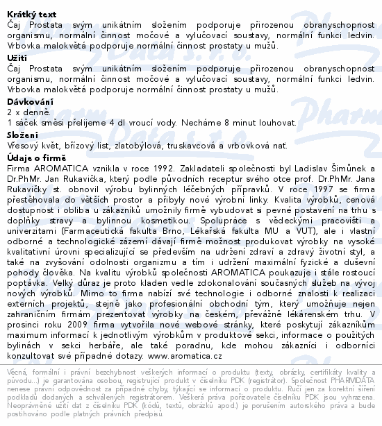 Čaj Prostata svým unikátním složením podporuje přirozenou obranyschopnost organismu, normální činnost močové a vylučovací soustavy, normální funkci ledvin. Vrbovka malokvětá podporuje normální činnost prostaty u mužů.