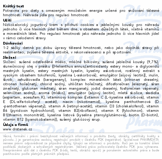 Potravina pro diety s omezeným množstvím energie určené pro snižování tělesné hmotnosti. Náhrada jídla pro regulaci hmotnosti.