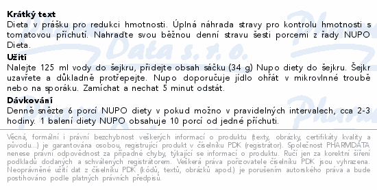 Dieta v prášku pro redukci hmotnosti. Úplná náhrada stravy pro kontrolu hmotnosti s tomatovou příchutí. Nahraďte svou běžnou denní stravu šesti porcemi z řady NUPO Dieta.