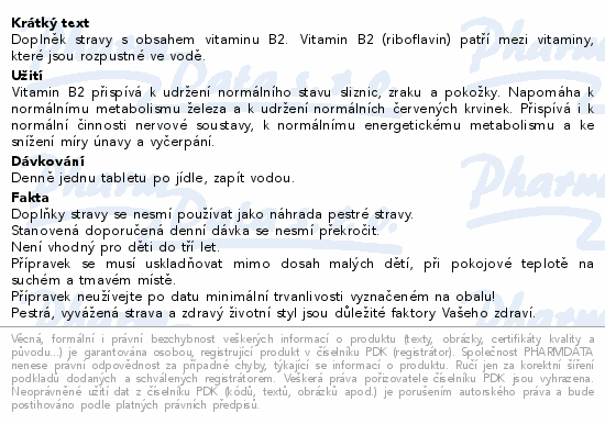 Riboflavin Generica tbl. 30 je doplněk stravy s obsahem vitaminu B2 (riboflavinu), který patří mezi vitaminy skupiny B rozpustné ve vodě důležité pro správné fungování organismu - normální energetický metabolismus, udržení zdravé pokožky a sliznic, snižování únavy a vyčerpání nebo tvorba červených krvinek.
