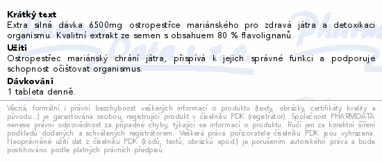 Extra silná dávka 6500mg ostropestřce mariánského pro zdravá játra a detoxikaci organismu. Kvalitní extrakt ze semen s obsahuem 80 % flavolignanů.