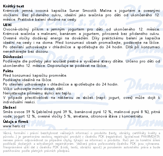 Sunar Kapsička Smootík malina jog.oves 12m+ 120g