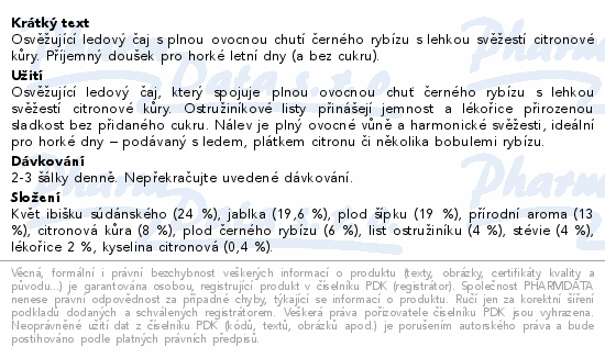 Osvěžující ledový čaj s plnou ovocnou chutí černého rybízu s lehkou svěžestí citronové kůry. Příjemný doušek pro horké letní dny (a bez cukru).