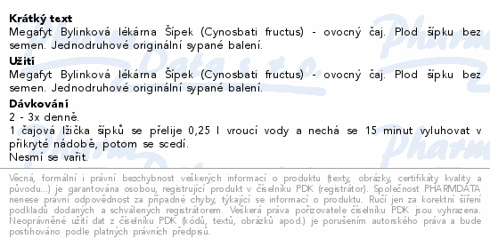 Megafyt Bylinková lékárna Šípek (Cynosbati fructus) - ovocný čaj. Plod šípku bez semen. Jednodruhové originální sypané balení.