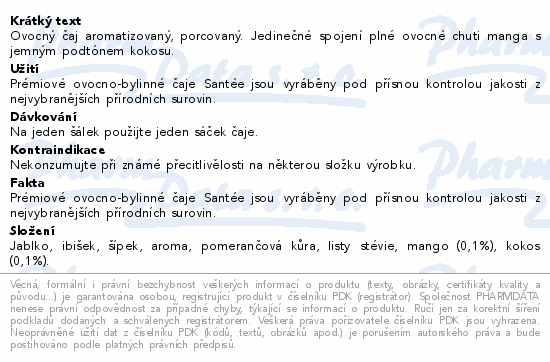 Ovocný čaj aromatizovaný, porcovaný. Jedinečné spojení plné ovocné chuti manga s jemným podtónem kokosu.