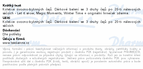 Kolekce ovocno-bylinných čajů. Dárkové balení se 3 druhy čajů po 20-ti nálevových sáčcích - Let it snow, Magic Moments, Winter Time + originální hrneček zdarma.