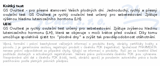 GS Ovultest - pro přesné stanovení Vašich plodných dní. Jednoduchý, rychlý a přesný ovulační test. GS Ovultest je rychlý ovulační test určený pro sebetestování. Zjišťuje výšenou hladinu luteinizačního hormonu (LH).