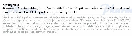 Přípravek Gingio tablety je určen k léčbě příznaků při některých poruchách prokrvení mozku a končetin. Čtěte pozorně příbalový leták.