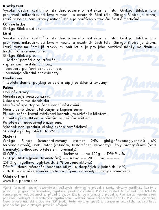 Ginkgo Biloba 40mg tbl.90+90 Bio-pharma