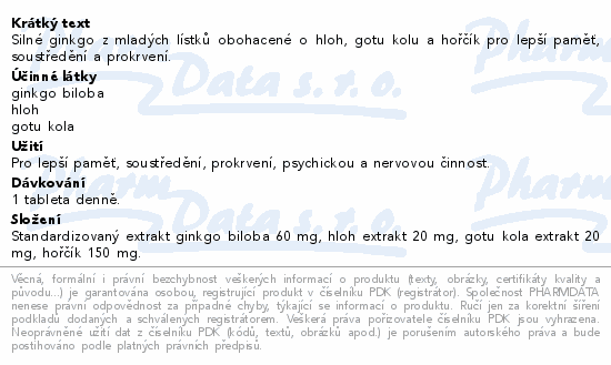 Silné ginkgo z mladých lístků obohacené o hloh, gotu kolu a hořčík pro lepší paměť, soustředění a prokrvení.