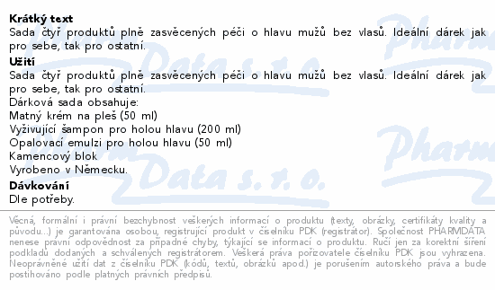 Sada čtyř produktů plně zasvěcených péči o hlavu mužů bez vlasů. Ideální dárek jak pro sebe, tak pro ostatní.