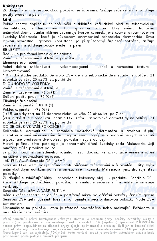Sensibio DS+ krém je zjemňující krém na seborhoickou a podrážděnou pokožku. Snižuje lokální zarudnutí, upravuje šupinaté stavy na pokožce a obnovuje rovnováhu pokožky.