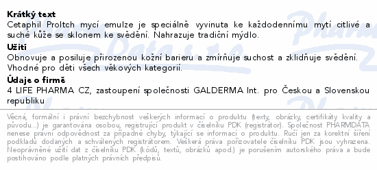 Cetaphil ProItch mycí emulze je speciálně vyvinuta ke každodennímu mytí citlivé a suché kůže se sklonem ke svědění. Nahrazuje tradiční mýdlo.